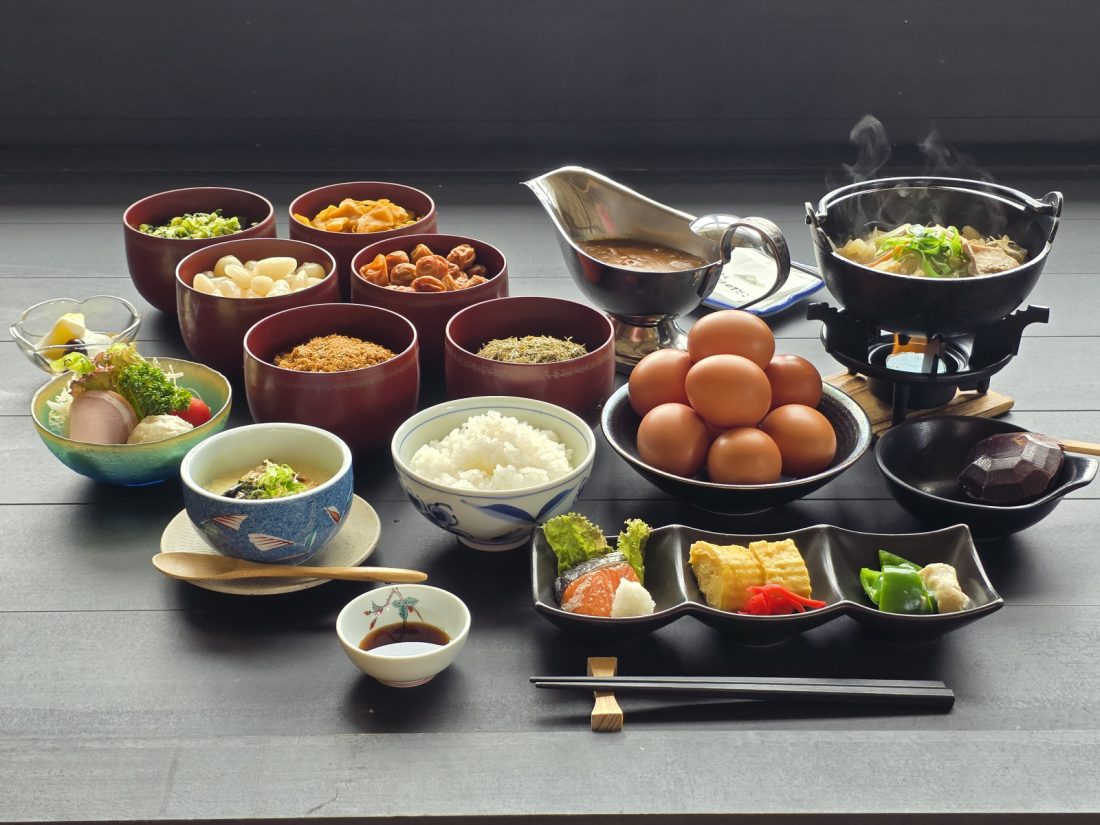 たまごかけご飯で行列のできるお店、但熊(たんくま)のたまごをはじめ、ブランド豚を使用した『八鹿豚の豚汁』。同市内、竹野町の誕生の塩のにがりと町内ふるさととうふの豆乳を使用したホテル自家製のお豆腐も人気です。澄んだ水と昼夜の温度差で育った但東町産の特別美味しいお米と共にご堪能ください。